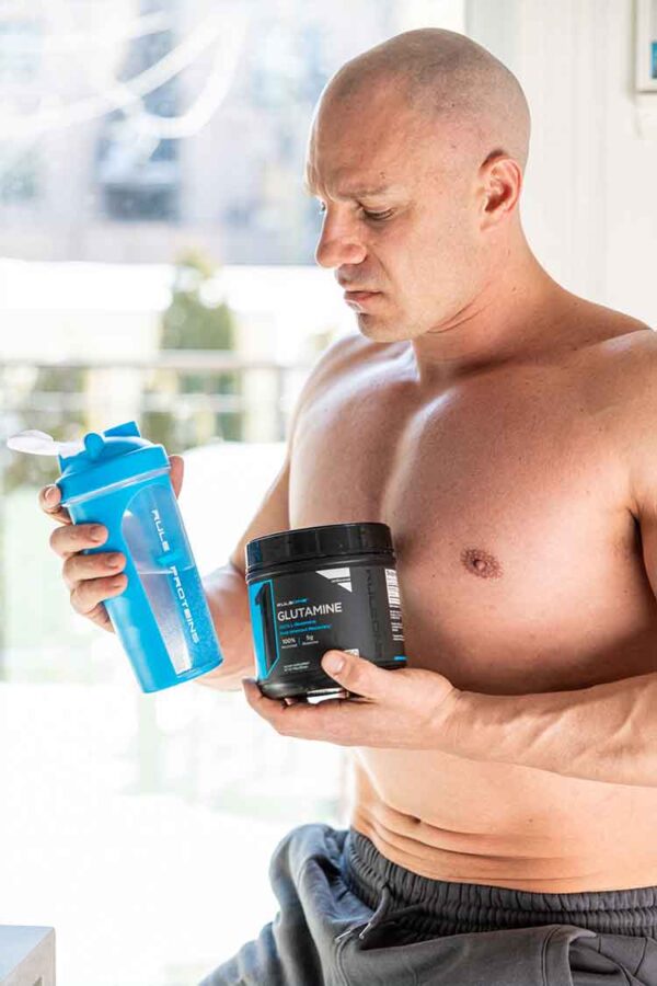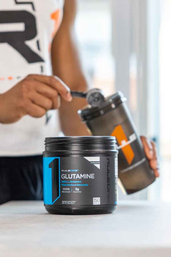 Unflavored R1 Glutamine mixes easily into most workout supplements, protein shakes, and fruit juices.